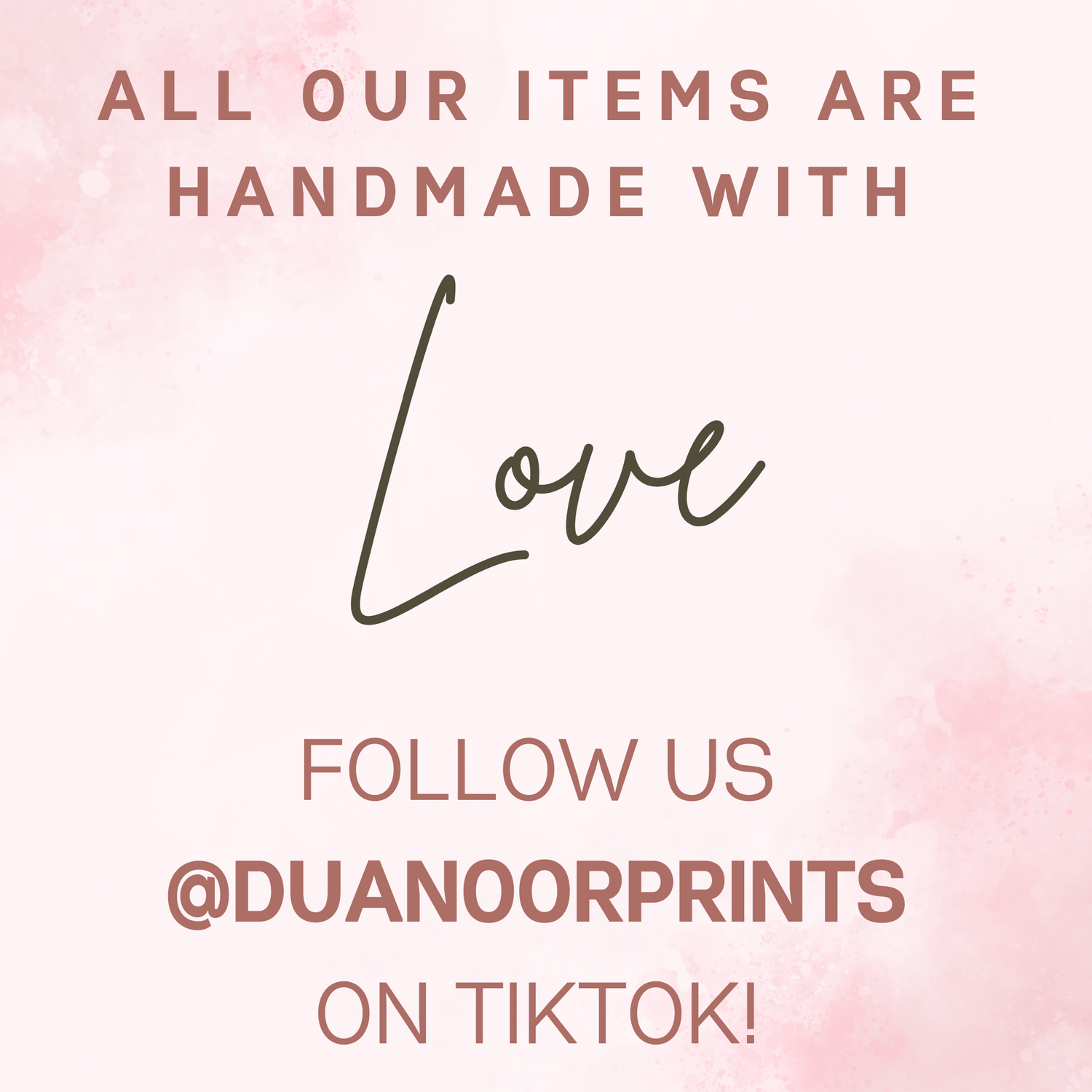 Handmade with a personal touch, every item at Dua Noor Prints carries a story—whether it’s a mystery box, one of our lovley cups, or a custom creation for someone special. We are dedicated to making each customer feel the same joy that Dua felt when seeing the sign on her kitchen.